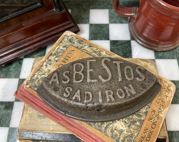 An Asbestos Sad Iron, also known as a "sad iron" (with "sad" meaning solid or heavy), is a type of iron that was heated directly on a stove. What makes it distinct and concerning is the inclusion of asbestos. Manufacturers used asbestos, often in the form of a pad or lining, within the iron's body, particularly in the handle or internal heating elements of earlier electric models.