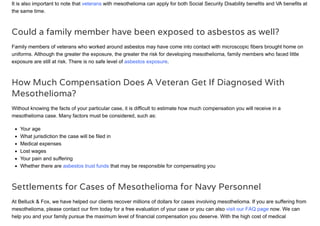 - Can family members receive benefits if a veteran dies from Mesothelioma?