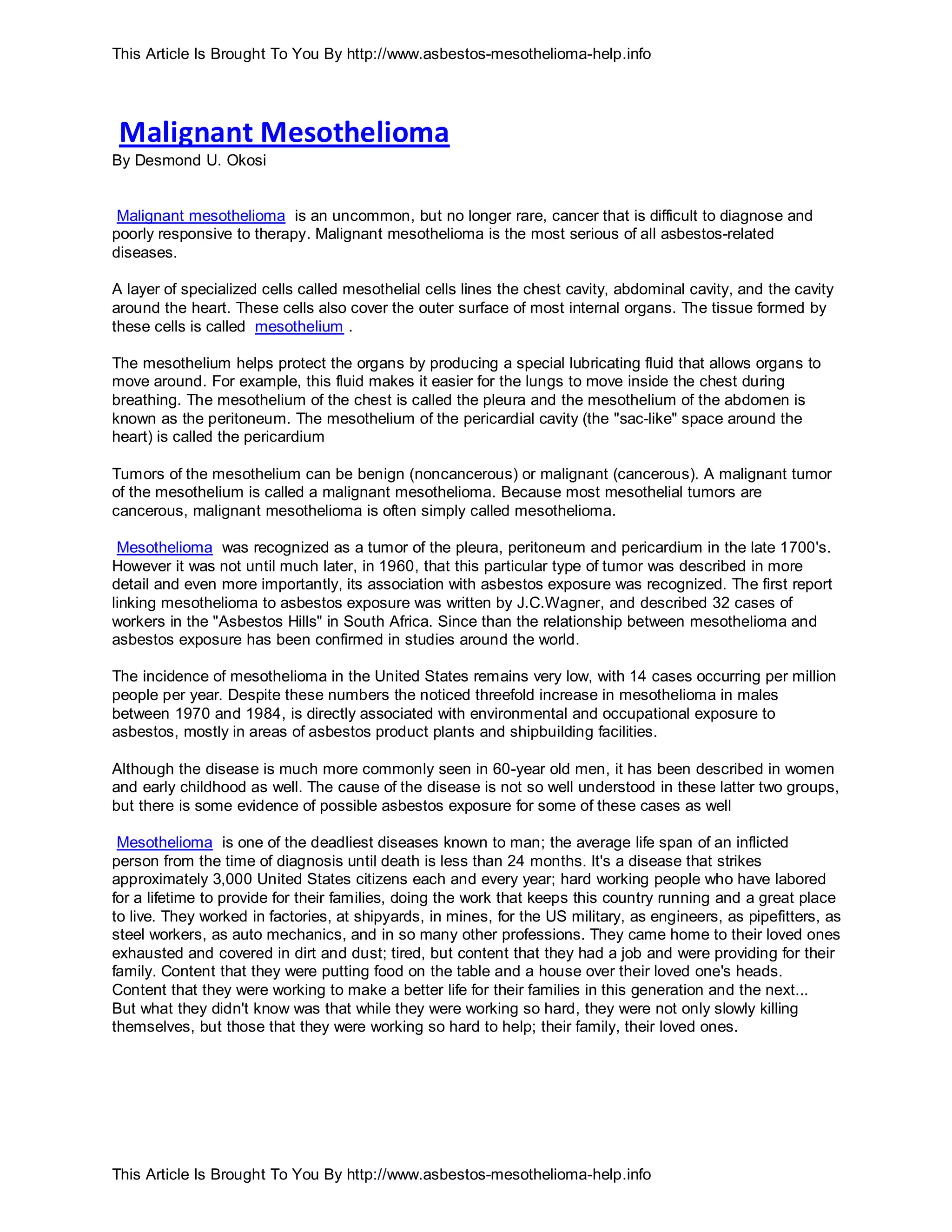 Understanding Malignant Mesothelioma