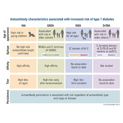 While there are several types of antibodies associated with T1D, the presence of one or more is usually sufficient to classify an individual as being at high risk. The more antibodies present, the higher the risk and the faster the potential progression.