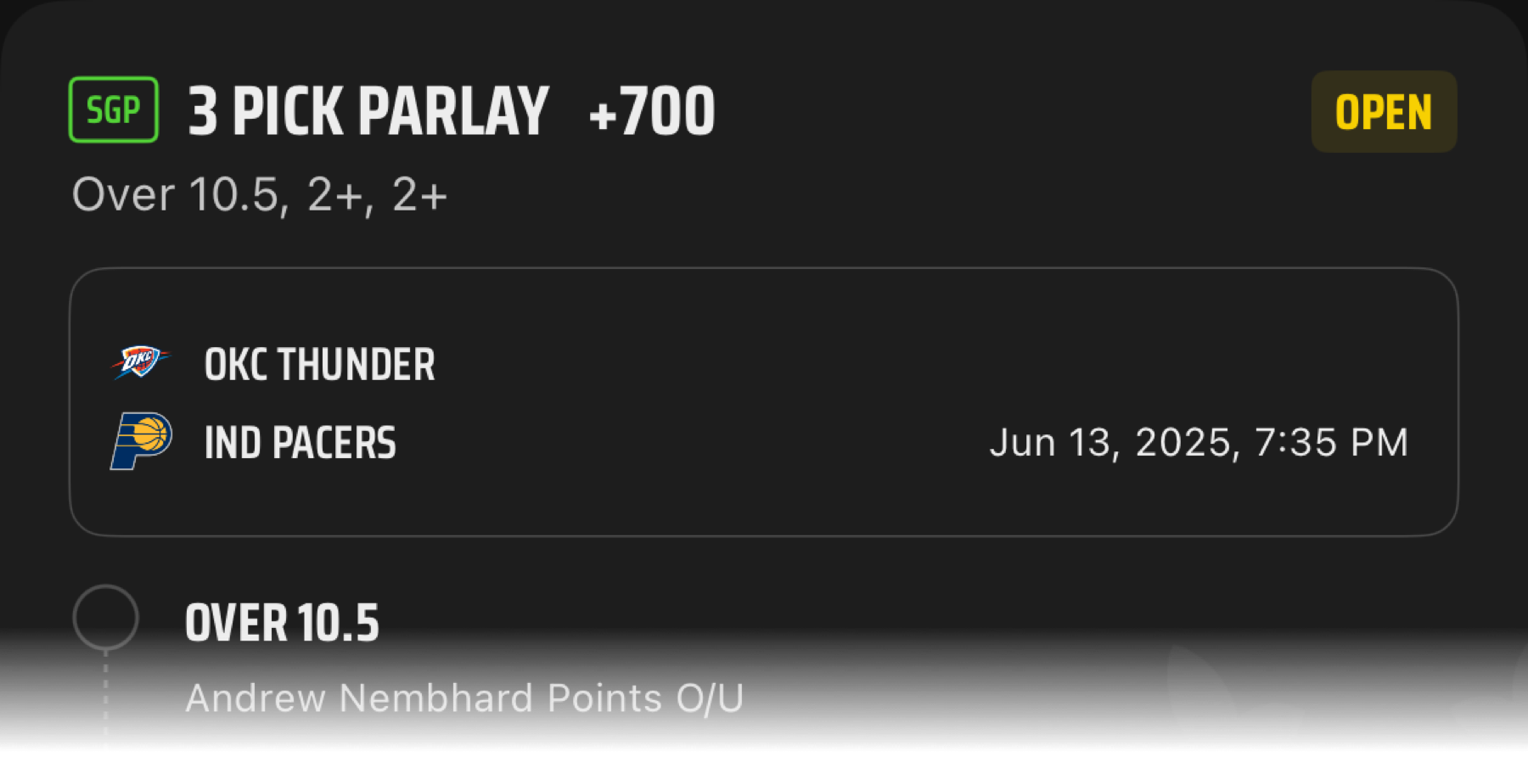 - Minimum 4+ legs required for the SGP.